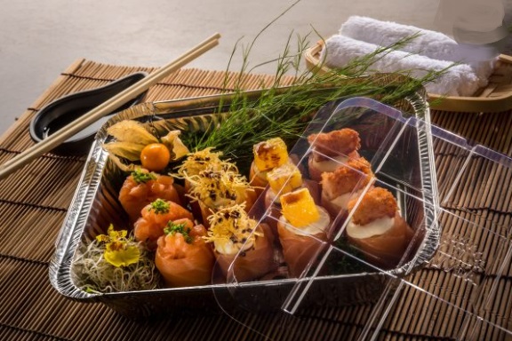 Forma retangular de alumínio com tampa pet transparente. Capacidade de 1.150ml.
